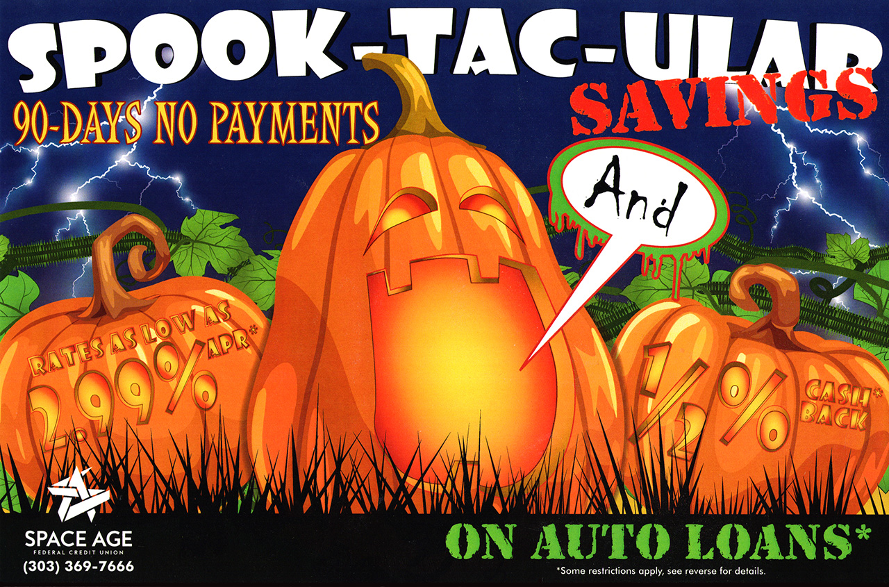 | POSTCARD - Spook-tac-ular Savings on Auto Loans Space Age Credit Union |